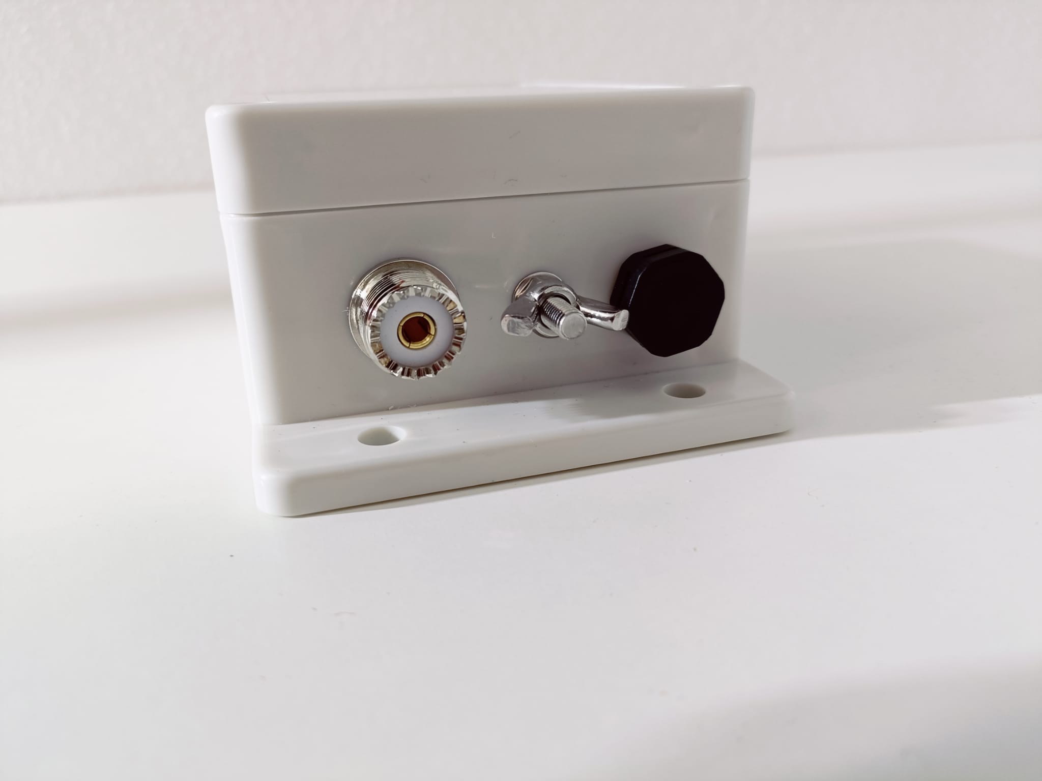 Der Balun ist mit einem großen und leistungsfähigen Ringkern aufgebaut, damit sind bis zu 600 W PEP über den gesamten Kurzwellenbereich (1.8 – 30 MHz) möglich. Das Gehäuse ist wasserdicht und verfügt über ein Ventil um unvermeidliches Schwitzwasser abzuleiten. Durch das Ventil wird verhindert das Insekten den Innenraum als Nistplatz verwenden. Oben am Balungehäuse ist eine Aufhängung vorgesehen, so muß der Antennendraht nicht auch noch den relativ schweren Balun tragen.