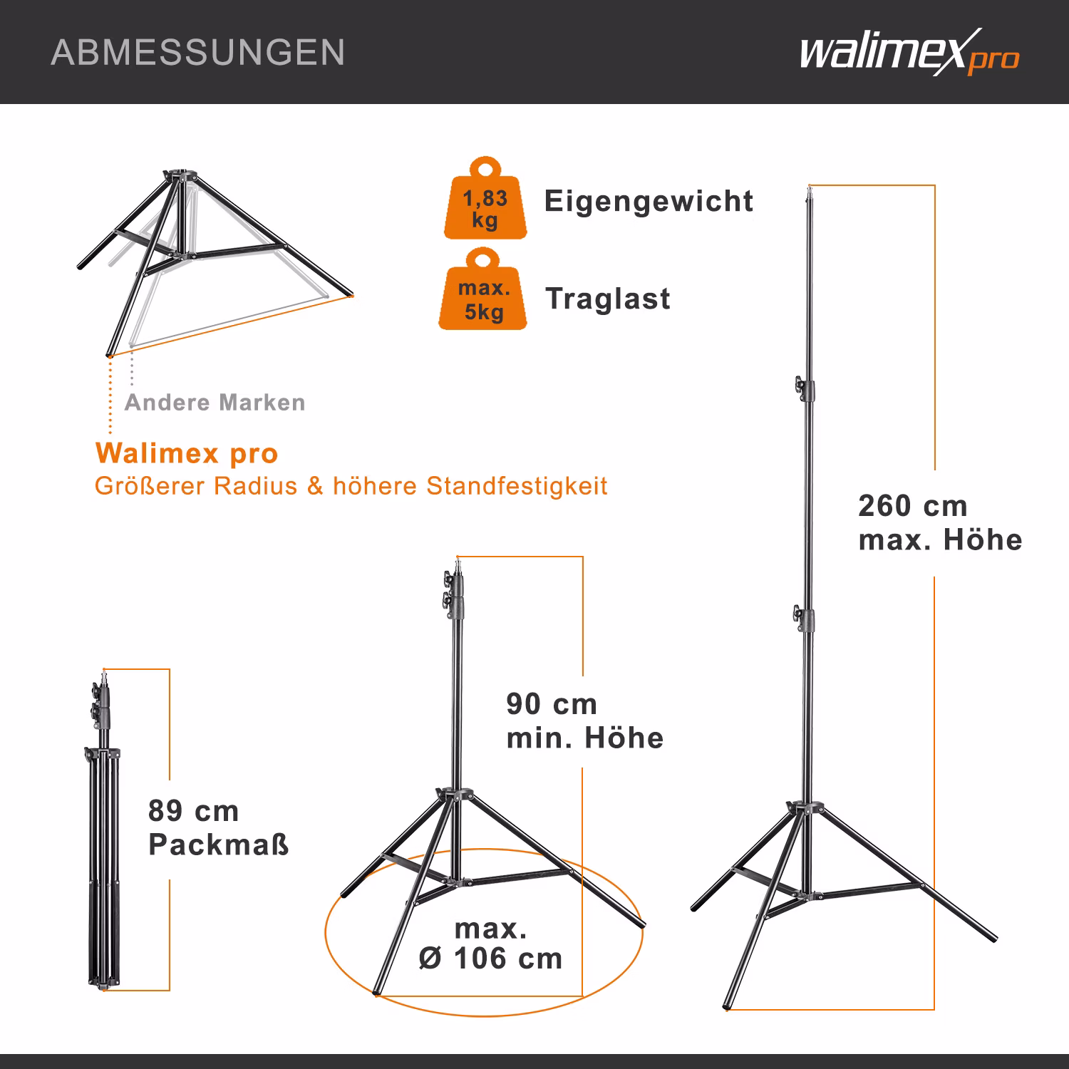 • 1x Walimex pro FT-8051 Lampenstativ 260cm