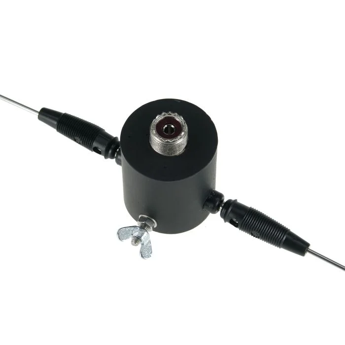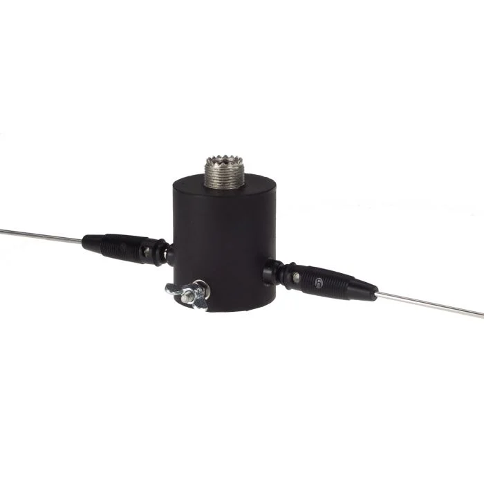Zerlegbarer Dipol für 2m und 70cm, gut für Balkon, Portabelbetrieb, Urlaub etc. Paßt in jede Aktentasche, Gewinn mindestens 5dB über Gummiwurst! Die beiden Dipolhälften sind aus Edelstahl und steckbar ausgeführt. Mittelteil dicht vergossen, mit PL-Buchse und Befestigungsmöglichkeit. Max. Leistung 100W.