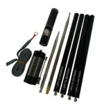 Tragetasche, Teleskopstrahler (2,5 m), 4x Alustangen-Elemente, anpassbares Spulenelement, Speisepunkt, Erdspieß, Radial, Anleitung