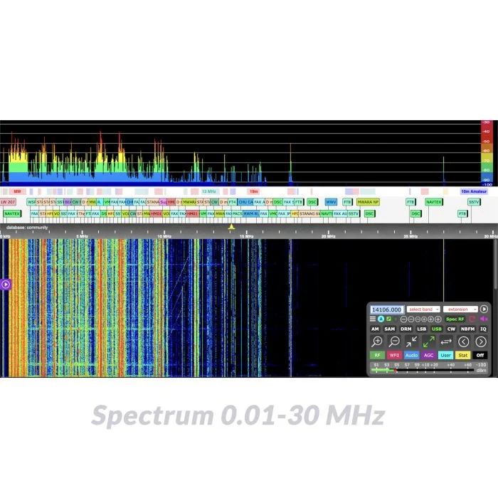 Die einzigartige Besonderheit ist das eingebaute Webinterface (OpenWebRX). Während für andere SDRs meist ein passender USB-Treiber und immer noch ein Programm auf dem PC zu installieren ist, erfolgt beim KiwiSDR 2 alles über den im PC bereits vorhandenen Web-Browser. Einfach den KiwiSDR 2 über LAN ans Netzwerk anschließen, Antenne anschließen, schon ist man auf Empfang. Natürlich ist der KiwiSDR 2 deshalb extrem portabel, weil er ohne jede Installation an jedem beliebigen PC mit einem aktuellen Webbrowser betrieben werden kann.