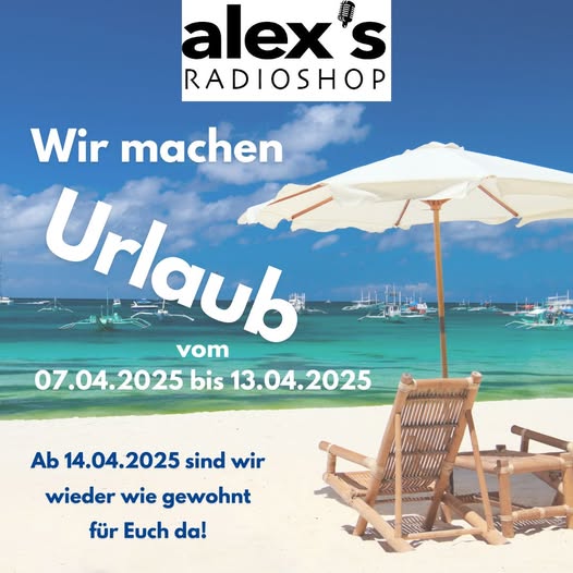 wir möchten euch darüber informieren, dass Alex’s Radio-Shop vom 07. April 2025 bis 13. April 2025 wegen Betriebsurlaub geschlossen bleibt. In dieser Zeit sind wir nicht erreichbar und können keine Bestellungen oder Anfragen bearbeiten.